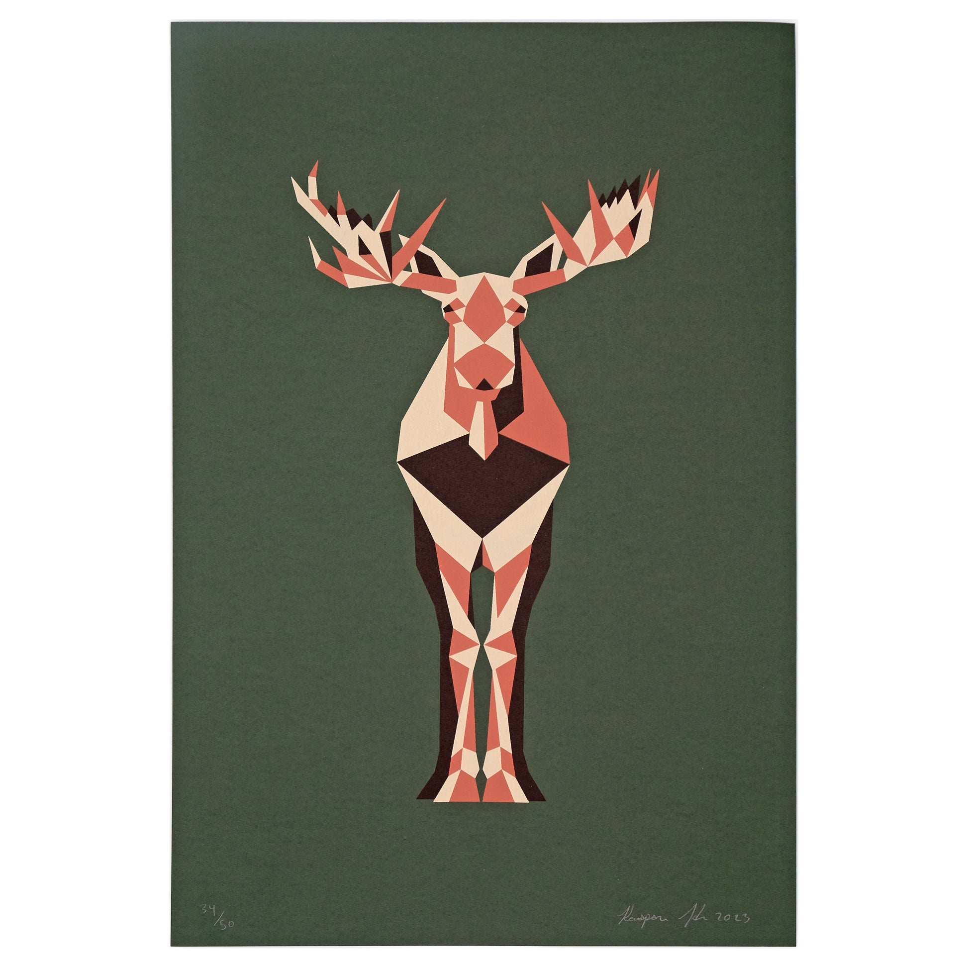 Majestic Maine moose, silkscreen printed by the Arm Factory in Portland, ME on heavy solid color stock.